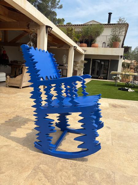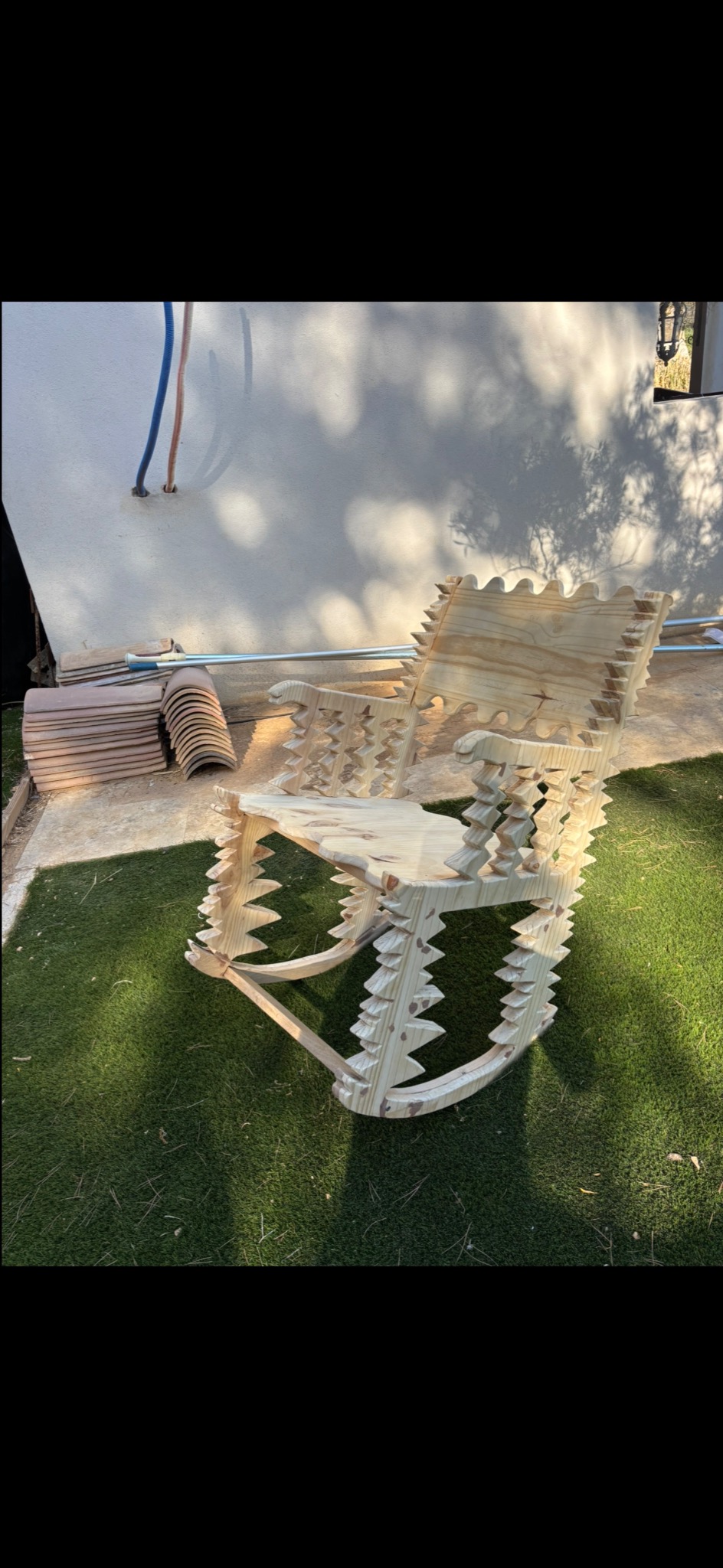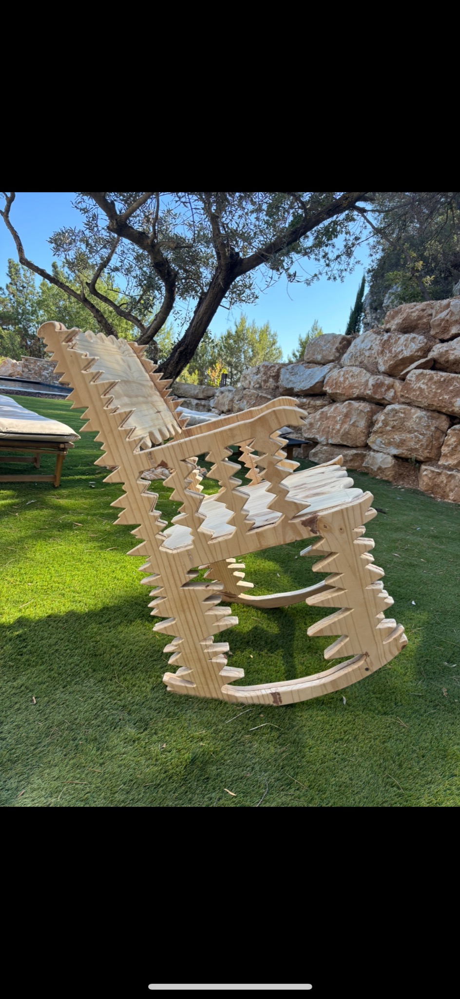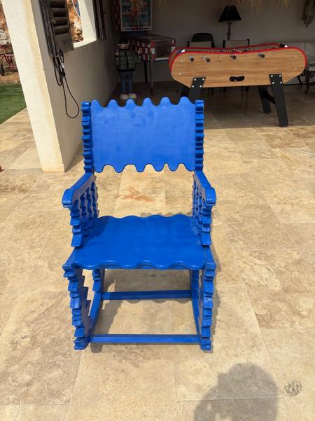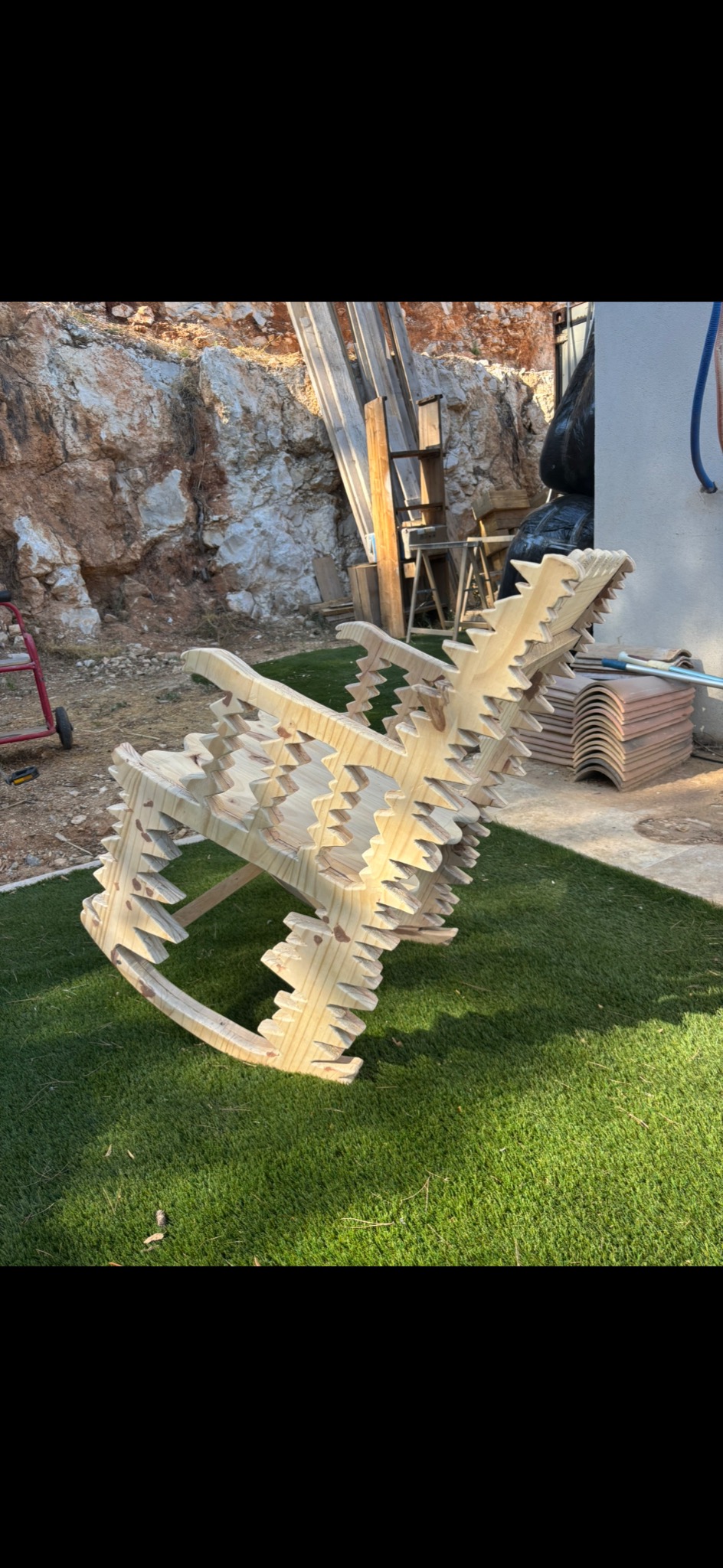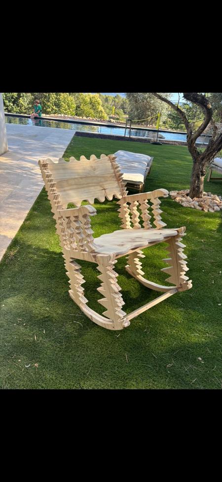 J'ai confectionné une chaise à bascule à partir de 2 planche en bois de pin.