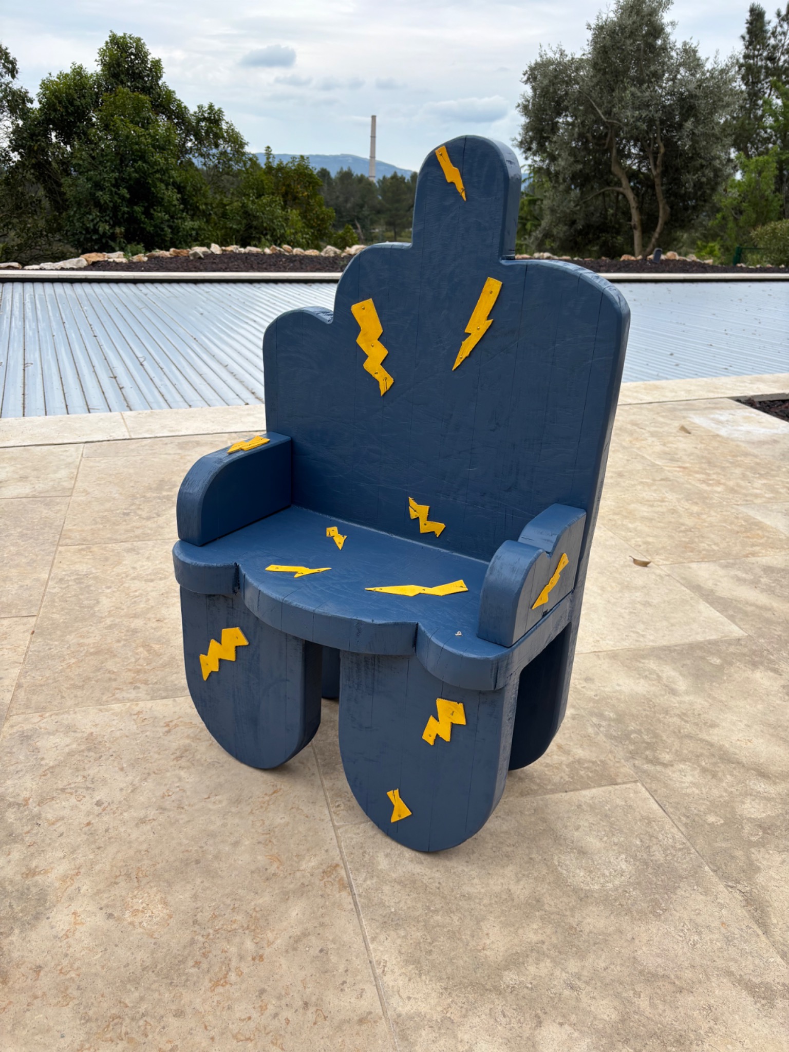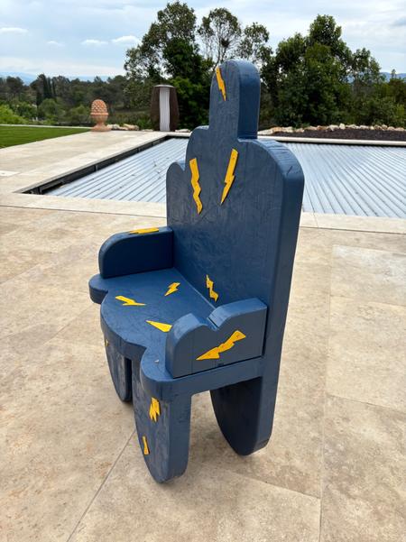 La chaise nuage et éclair a été confectionné à partir d'une planche de 5 cm d'épaisseur et assemblée elle aussi à l'aide du Nejiri Arigata.