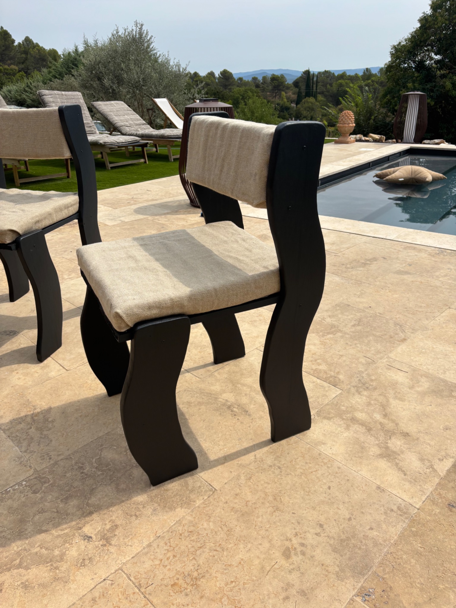 Ces deux chaises ondulées ont été confectionné à partir de bois de planche de chêne, pour le rembourrage j'ai découpé un matelas et recouvert de tissu en lin que j'ai récupéré de rideaux.