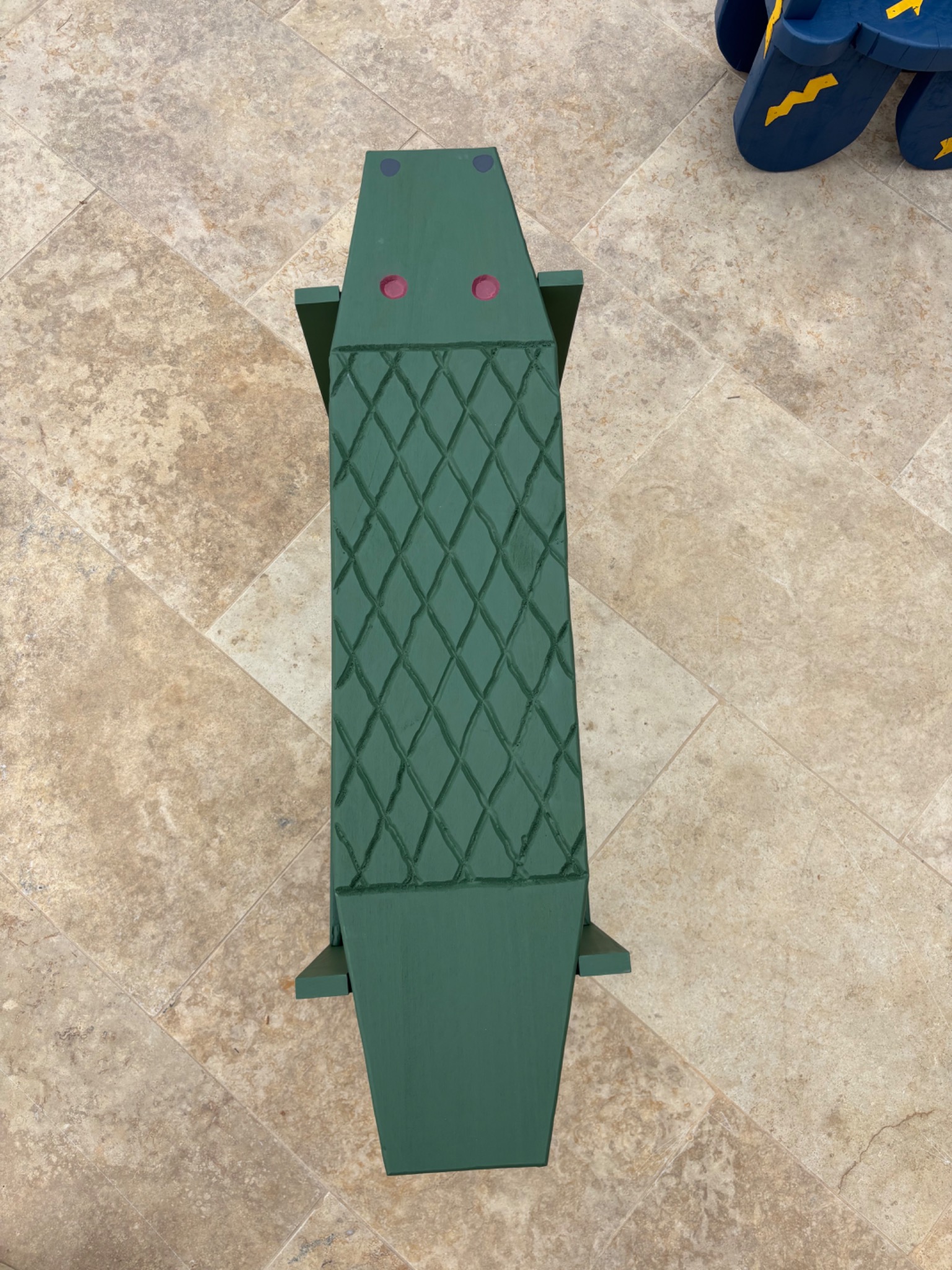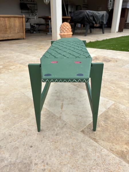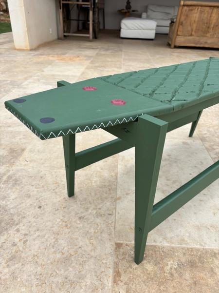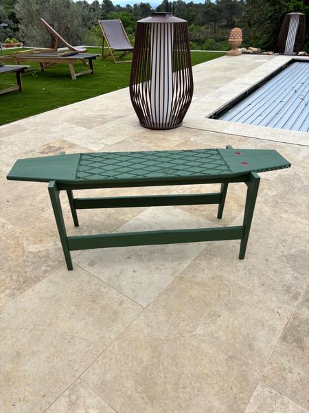 Les pieds du banc crocodile ont été assemblé sans aucune vis à l'aide du Nejiri Arigata (une technique japonaise d'emboitage sans jonction apparente).