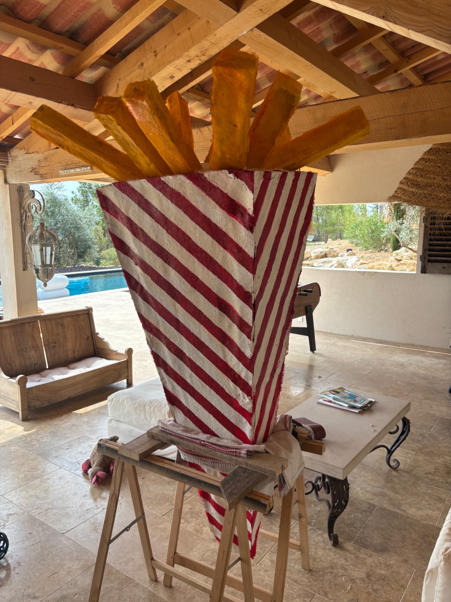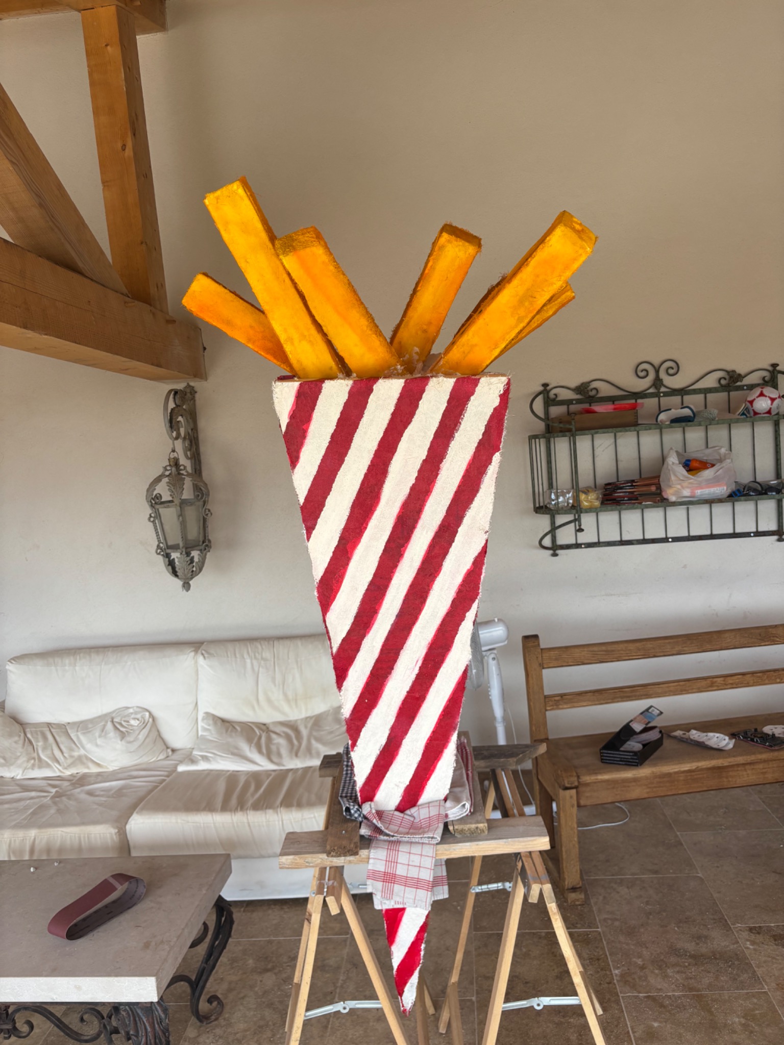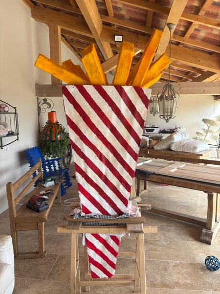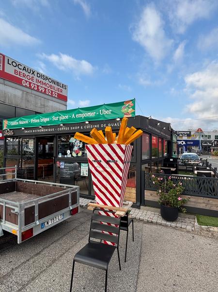 Première commande pour la devanture d'un restaurant : Un cône de frites de 2m.