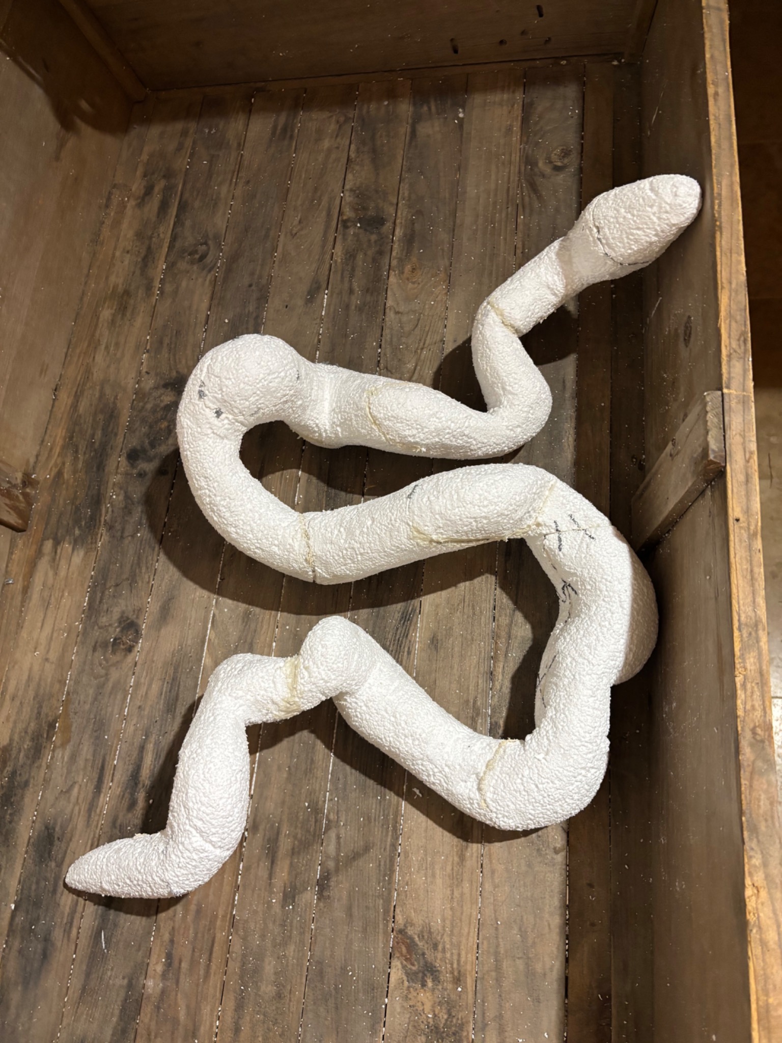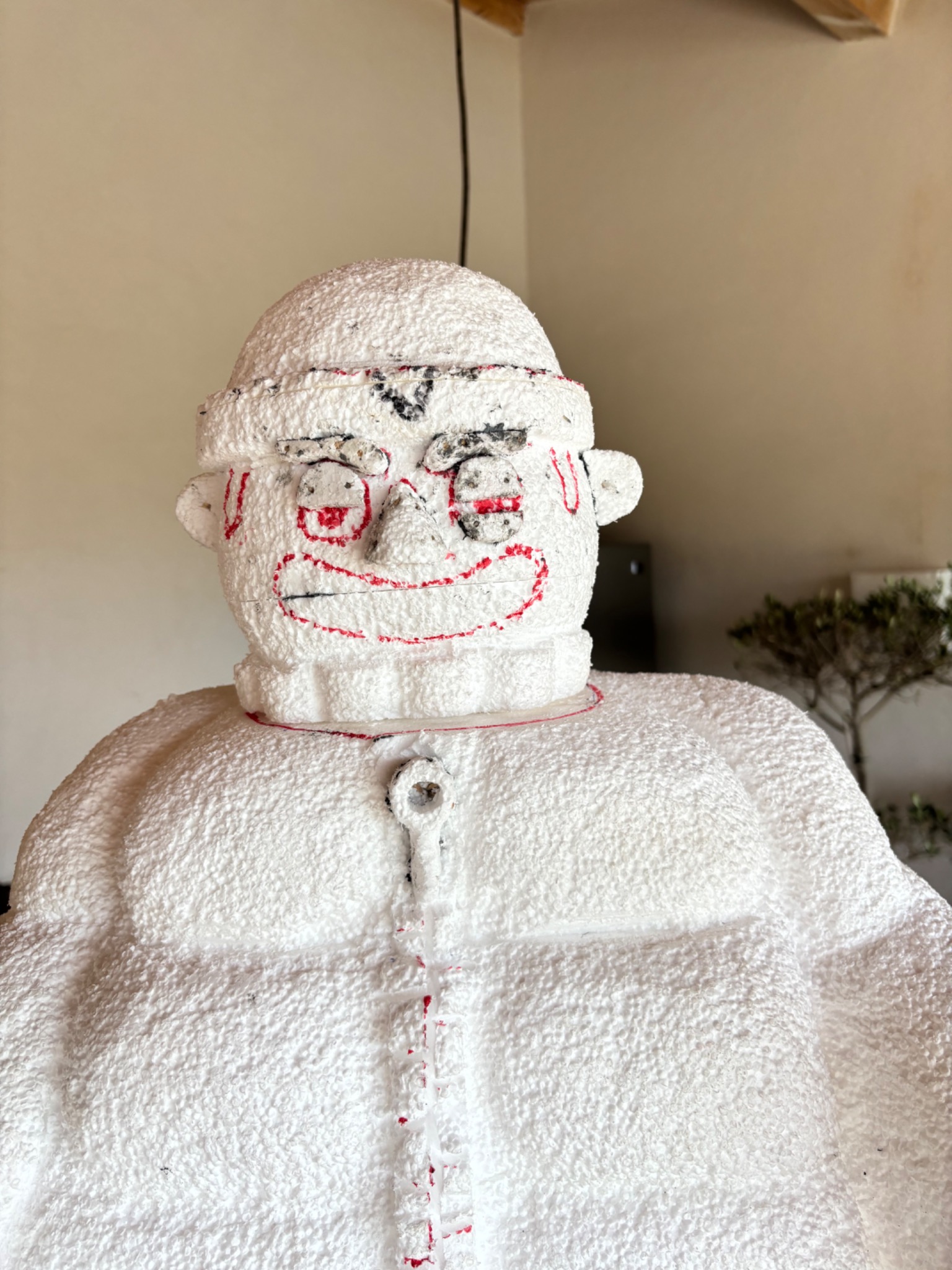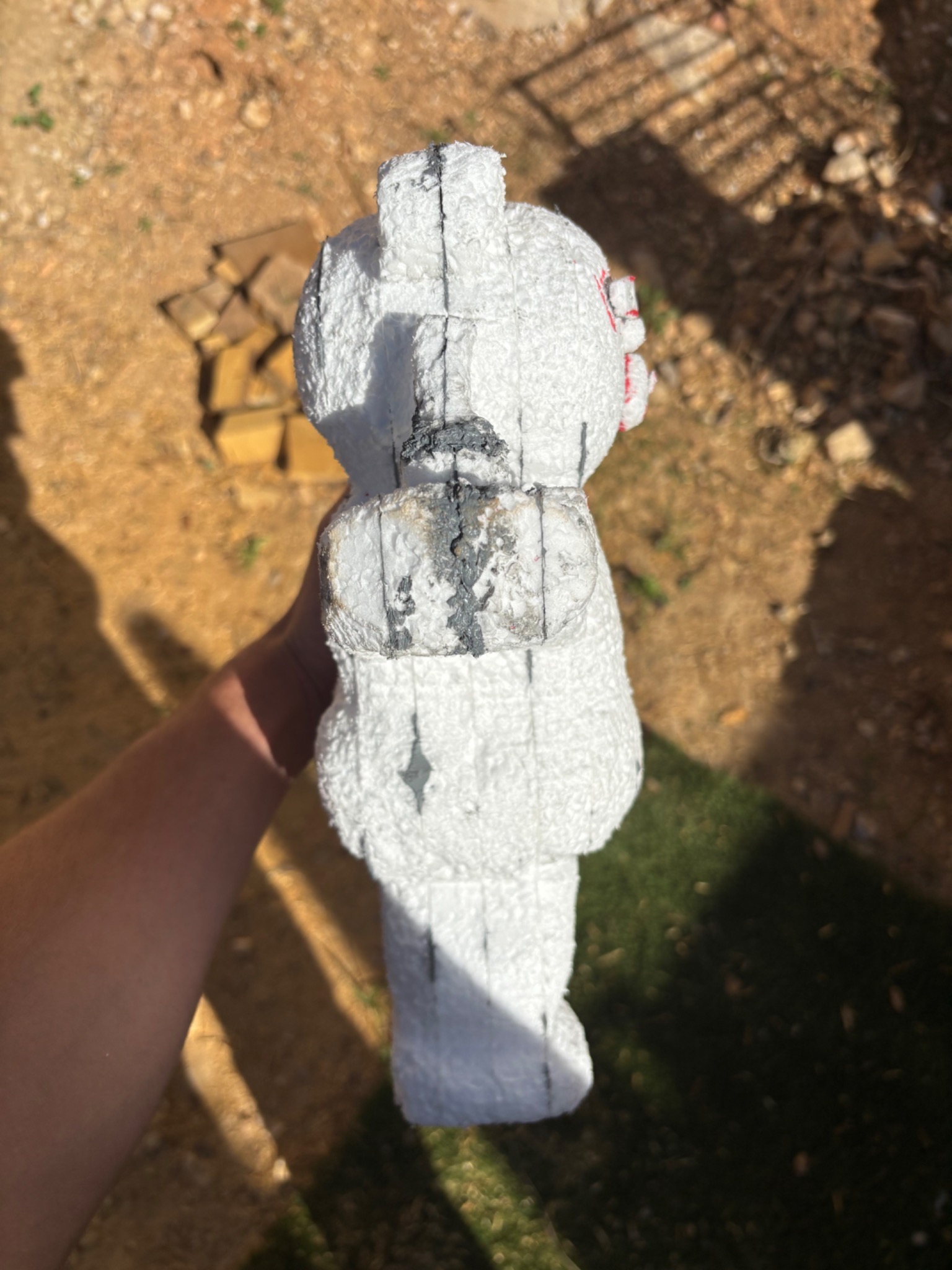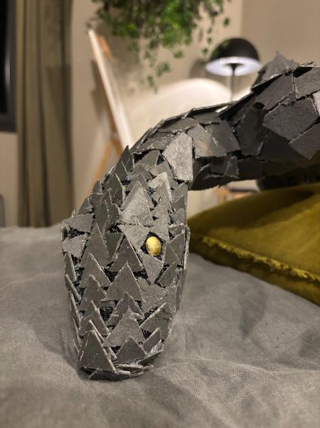 Réalisé en polystyrène puis recouvert de résine pour l'étanchéité et la solidité. Cette sculpture devait être exposée en extérieur, elle devait donc être solide et résistante aux intempéries.